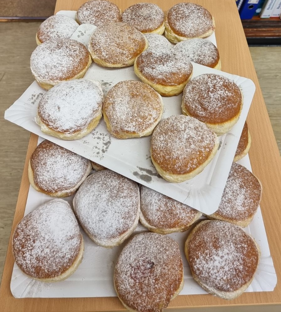 Die Freude war groß, als früh morgens ofenfrische Berliner vom Inner Wheel Club NOK e.V. geliefert wurden. Dank der großzügigen Spende von Frau Nowik-Hercegfi und Herrn Deschner (vom Ofenstudio Deschner GmbH), die hierdurch auch die Aktion „OBDACH“ unterstützten, konnten mit einer einzigen Geste viele Menschen glücklich gemacht werden.